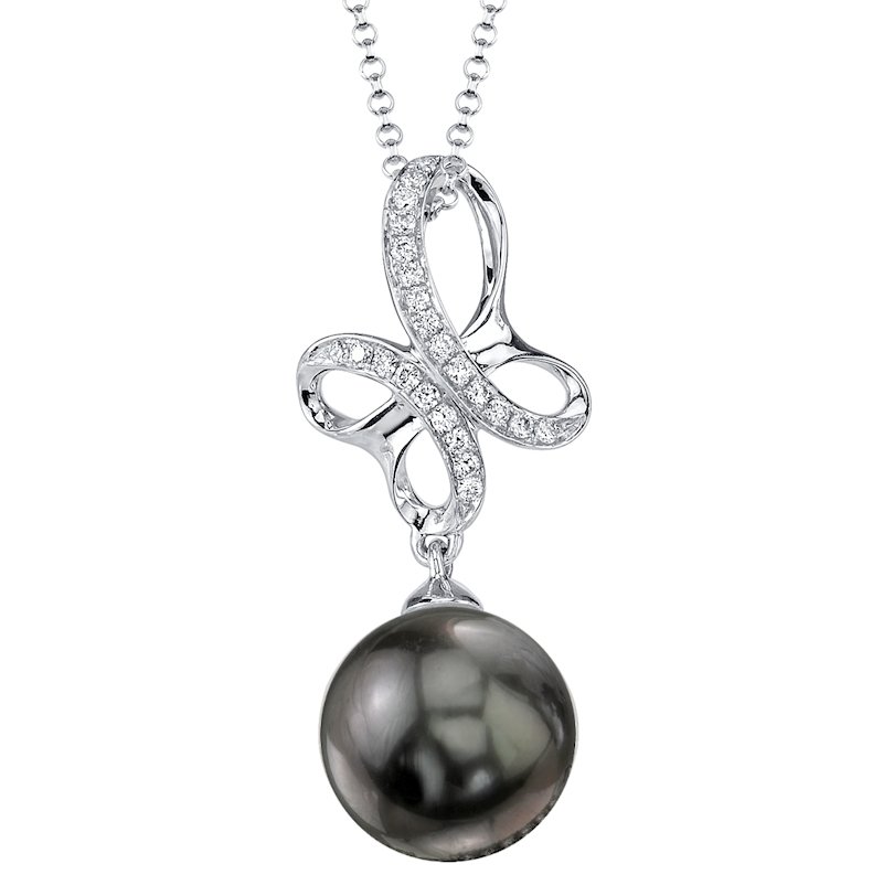 Naturally colored “black” pearls aren’t black, but have hues of various dark colors, such as gray, purple, blue or green, giving the illusion of black. The pearl’s color is created by the tissue of its mantle, which is determined by the colors within the donor mollusk’s shell. These gems will also display strong overtones of peacock, red, green or egg plant (dark purple).